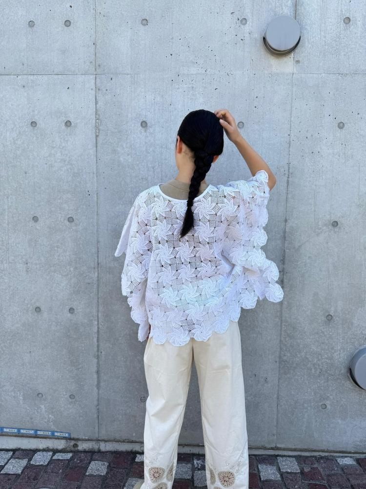 サイズ(平置きにて計測)      サイズ表記なし   肩幅FREE、袖丈(首元〜袖口)35センチ、バスト63センチ、着丈53センチ